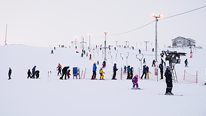 The most popular ski routes in Bláfjöll are the North Route and Kóngsgilið. Both can be accessed via Kóngurinn (the new chairlift) and Drottningin (the old chairlift). Near Kóngurinn, you’ll also find Lilli Klifurmús (City Lift) and the Snowboard Lift for Mohawk’s park. Above the Bláfjöll Lodge are the beginner lifts Amma Mús and Hérastubbur, along with children’s play equipment. Below the Bláfjöll Lodge are the easiest slopes for beginners with the Magic Carpet and the rope lift Patti Broddgöltur, which are free to use.